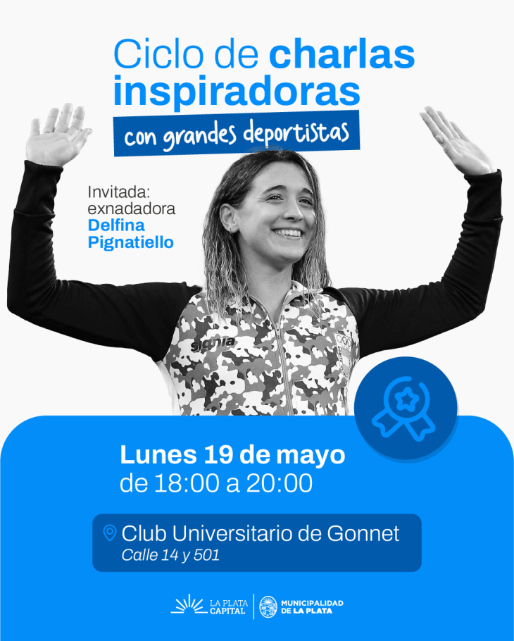 El primer encuentro se desarrollará el lunes 19 de mayo de 18:00 a 20:00 en el Club Universitario de Gonnet (14 y 501), y tendrá como invitada a la ex nadadora Delfina Pignatiello.