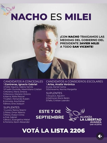 Un concejal de La Libertad Avanza fue detenido en San Vicente acusado de realizar disparos durante una discusión con su pareja. Se trata de Ignacio Contreras, quien en septiembre fue electo para ocupar dicho cargo desde diciembre de este año en la mencionada localidad.