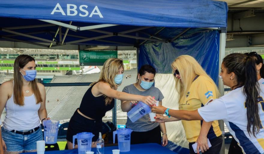 El 30 de octubre pasado, los puestos de hidratación de ABSA se apostaron en el Estadio Ciudad de La Plata “Diego Armando Maradona” para asistir a cientos de personas que concurrieron al lugar en el marco de los partidos entre Estudiantes y Villa San Carlos, y Gimnasia vs. El Porvenir. Ambos encuentros correspondientes al Clausura 2021 del torneo femenino YPF.