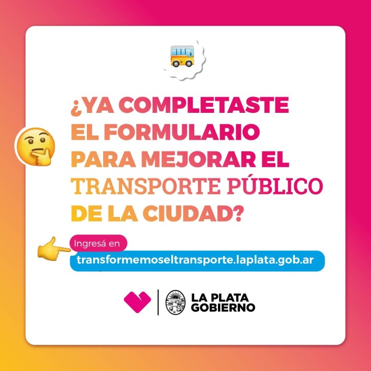 De acuerdo a fuentes comunales, los vecinos podrán participar de la encuesta ingresando a https://transformemoseltransporte.laplata.gob.ar/, donde encontrarán preguntas vinculadas a la frecuencia del servicio, los horarios, los recorridos, la distancia y el estado de los vehículos.