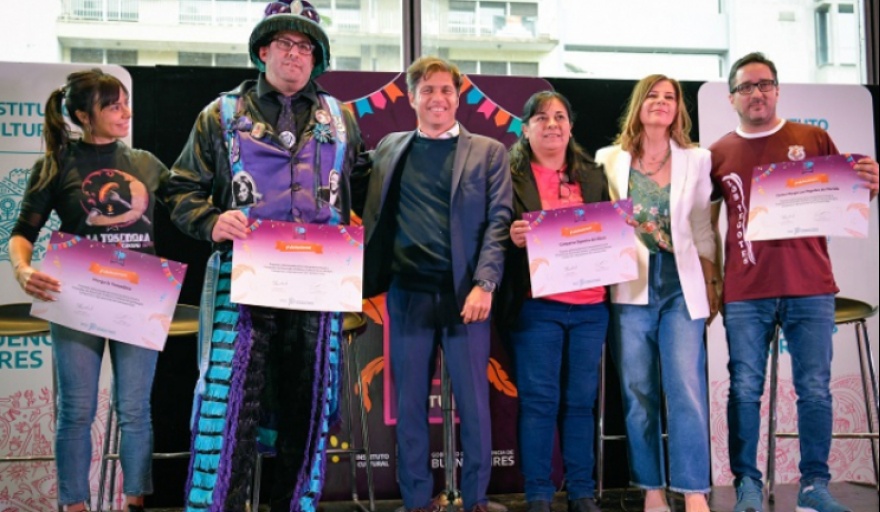 En el marco del programa Carnaval es Cultura, el gobernador de la provincia de Buenos Aires, Axel Kicillof, encabezó este viernes junto a la presidenta del Instituto Cultural, Florencia Saintout, el acto de entrega de los premios anuales a Proyectos de Desarrollo Artístico y Cultural de las Murgas, Comparsas y Agrupaciones de Carnaval Bonaerense.