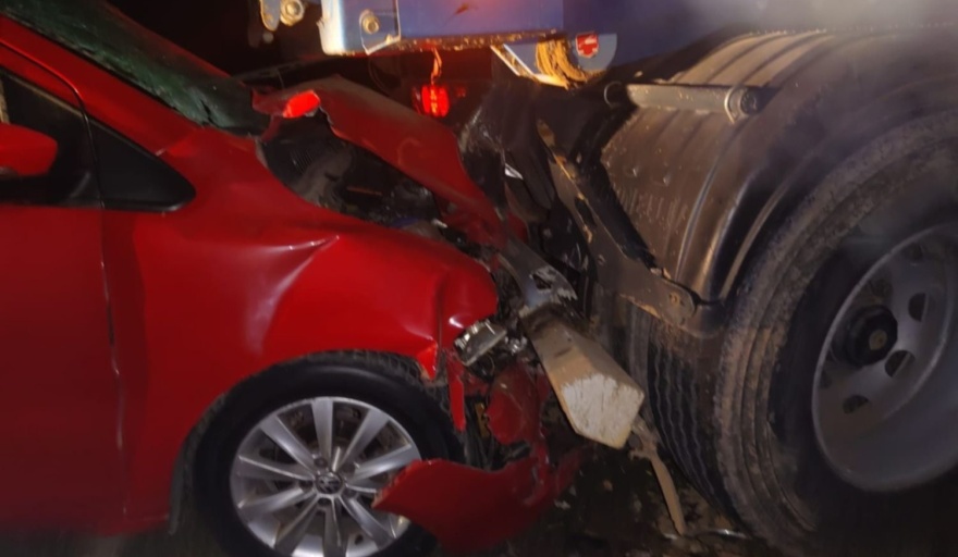 Las imágenes muestran el estado devastado del frente del Volkswagen rojo tras colisionar con uno de los camiones.