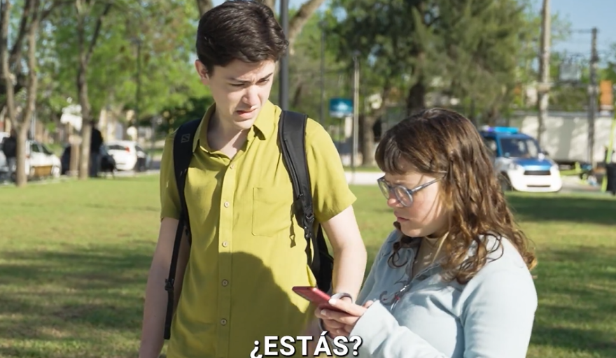 El mensaje central de la iniciativa se resume en una escena simple: un chico y una chica caminan juntos; él le habla, pero ella, distraída por el celular, no lo escucha. En pantalla aparece la frase: “Estás, pero no estás. No es tu culpa. Cada notificación, cada like, te da un minipremio. Dopamina. Y querés otro, y otro. No se trata de dejar de usarlo, sino de no olvidarte de estar. ¿Estás? Estamos”.