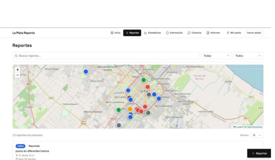 Ya se encuentra online La Plata Reporta (laplatareporta.com) una plataforma digital para que los y las platenses puedan registrar y visualizar en tiempo real fallas en servicios públicos mediante reportes geolocalizados.