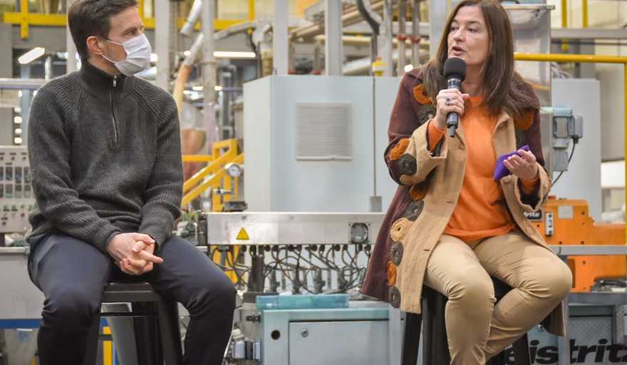 La empresa tiene más de 65 años de trayectoria en la industria plástica local. Se dedica al desarrollo, la producción y la comercialización en todo tipo de termoplásticos, su presidenta Graciela García celebró la iniciativa y dio unas palabras de bienvenida a las funcionarias y funcionarios.